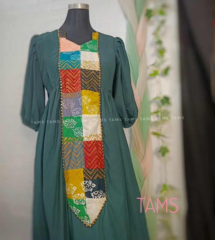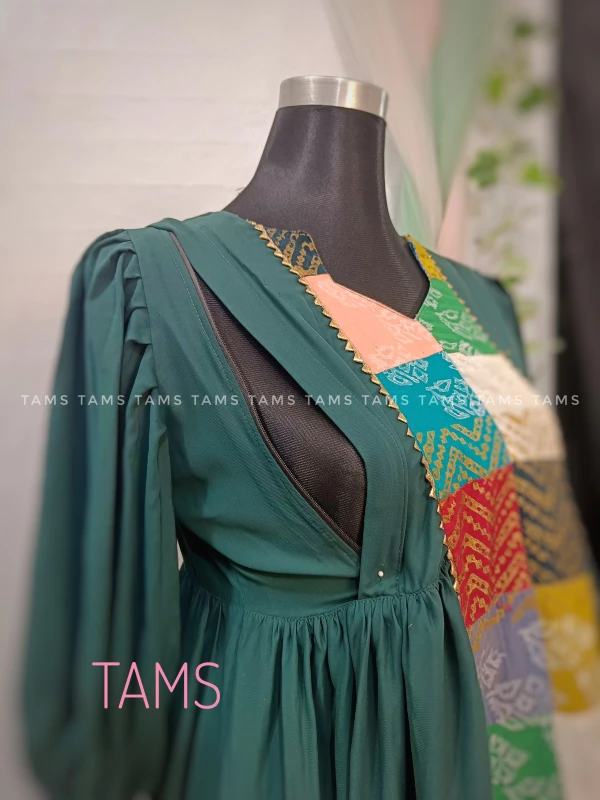 ৪৫" লং কুর্তিহাতার লং ১৫"দুপাশে ফিডিং চেইন আছে ব্রেস্ট ফিডিং করানোর জন্যডাবল জর্জেট (ইনারের প্রয়োজন নেই)