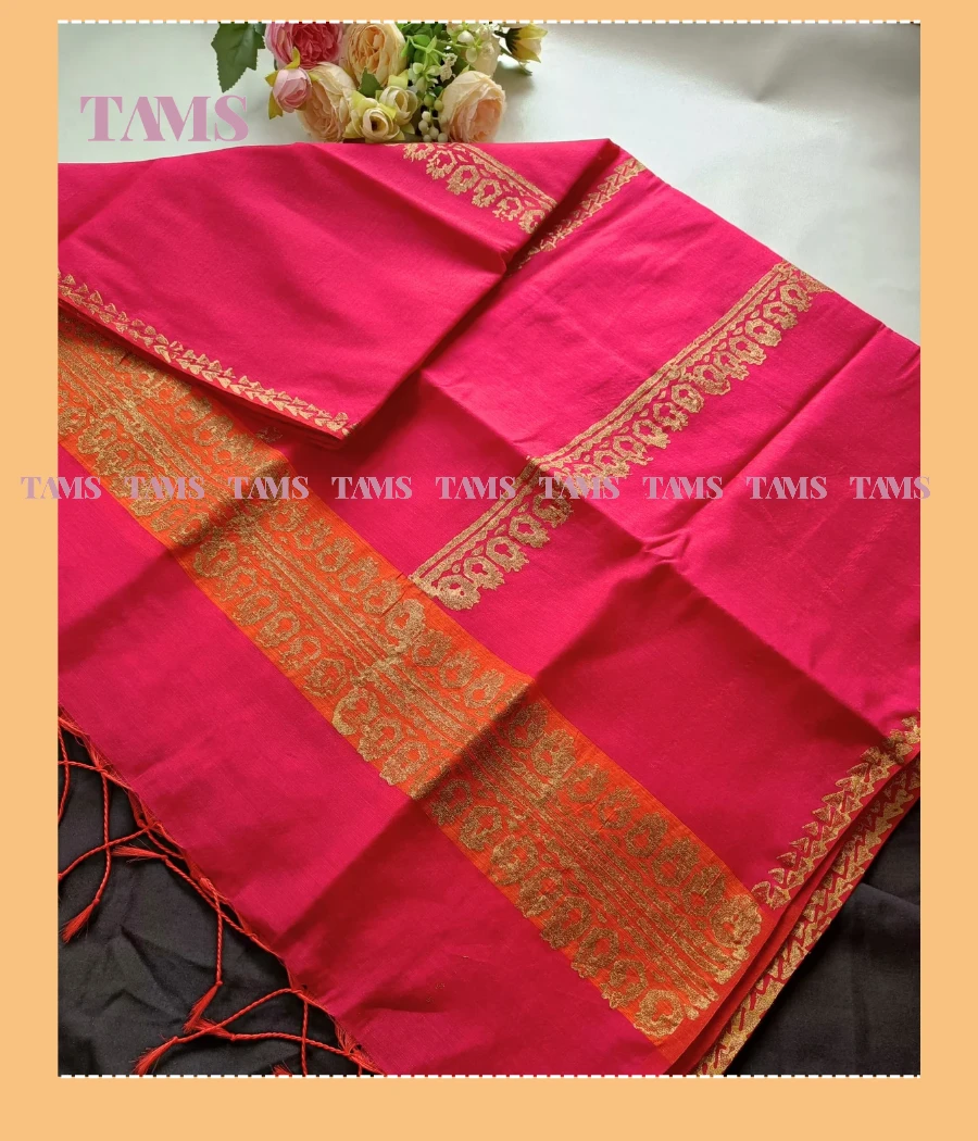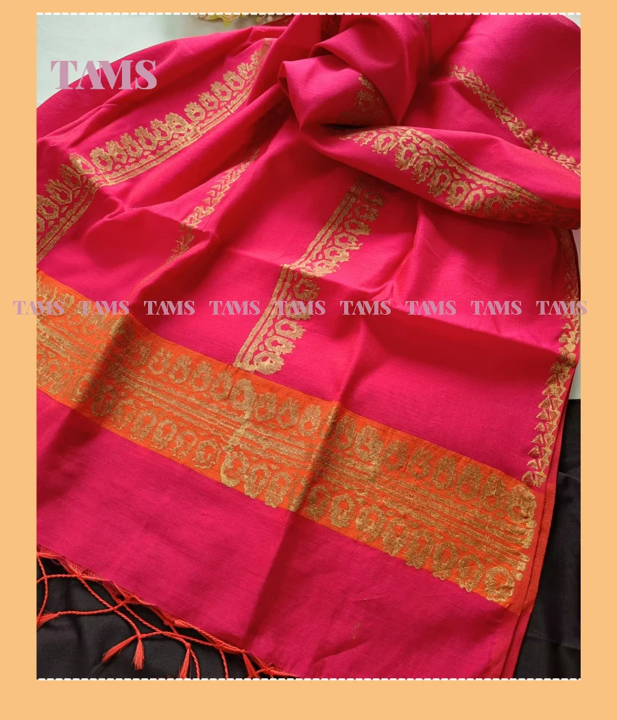 • হাফ সিল্ক ওড়নাতে ব্লক প্রিন্ট করা