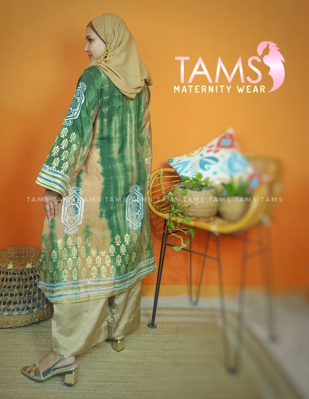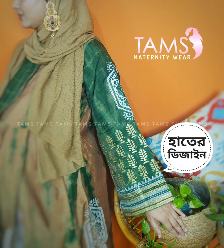 • সিল্ক কাপড়ে বাটিক করা, সাথে ব্লকের কাজ রয়েছে।